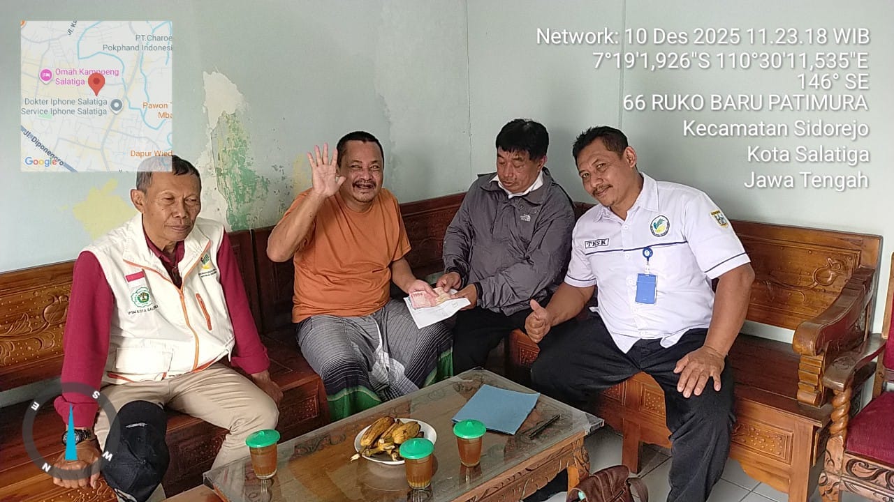 Bantuan diserahkan secara simbolis oleh Kepala Dinas Sosial Kota Salatiga, dr. Riani Isyana Pramasanthi, M.Kes., didampingi Kabid Linjamsos & PFM, Lurah, Kasi Sospermas, TKSK dan PSM di wilayah Kelurahan Salatiga pada Rabu, 10 Desember 2025.